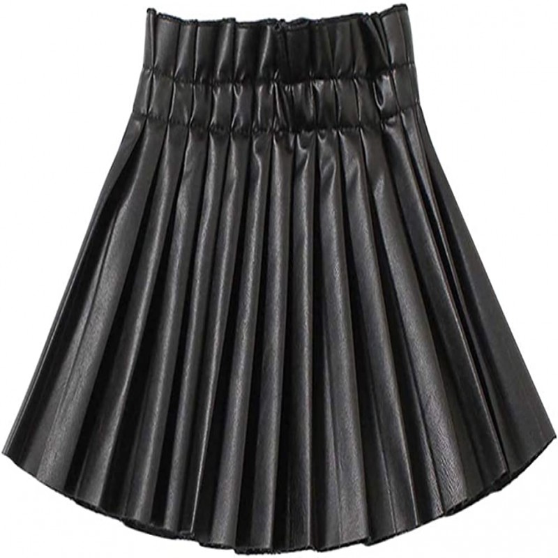 WELAKEN Girls', Teens', Toddlers' & Girls' Pu Leather Skirt Faux Leather Pleated Skirt