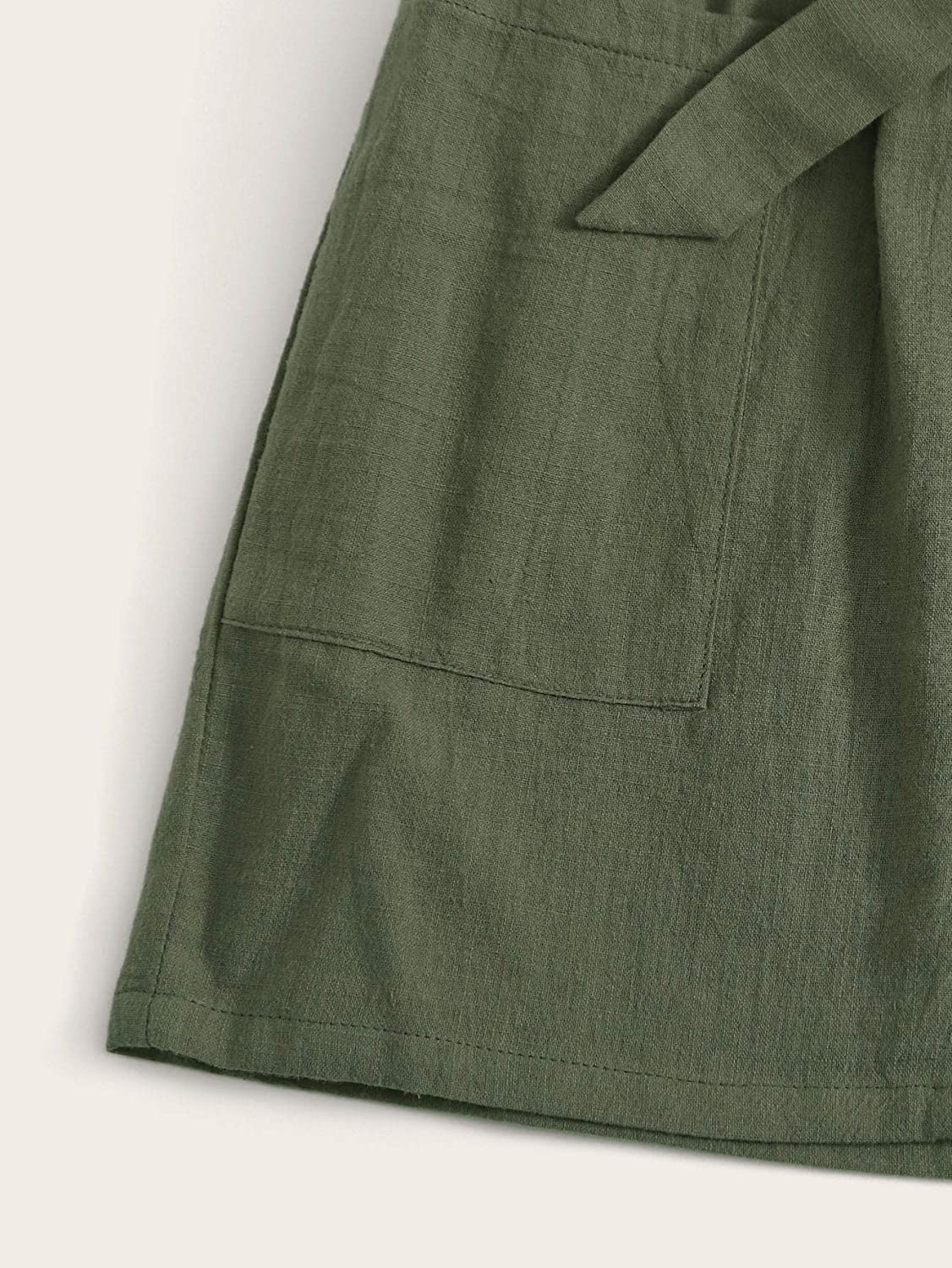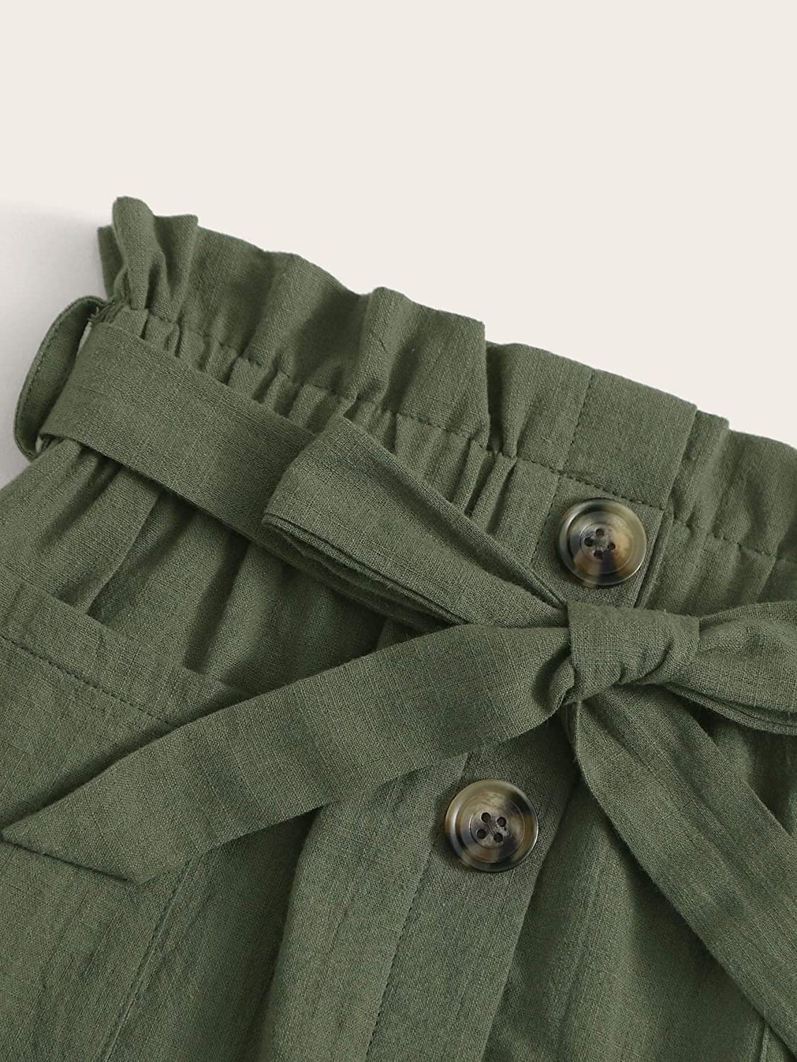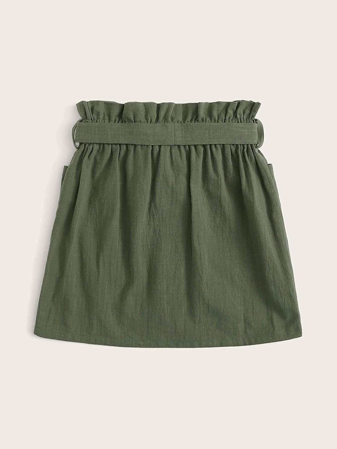 SOLY HUX Girls' Paper Bag Waist Button Front Pocket A-Line Tie Belt Skirt