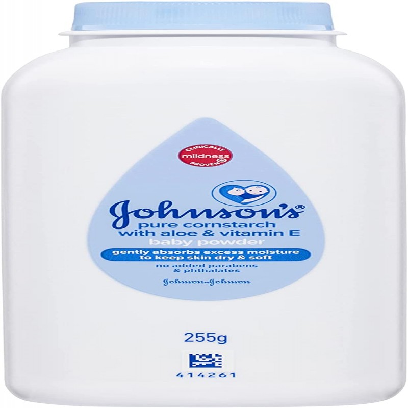 Johnsons Baby Powder with Naturally Derived Cornstarch Aloe Vera and Vitamin E, Hypoallergenic, 9 oz.