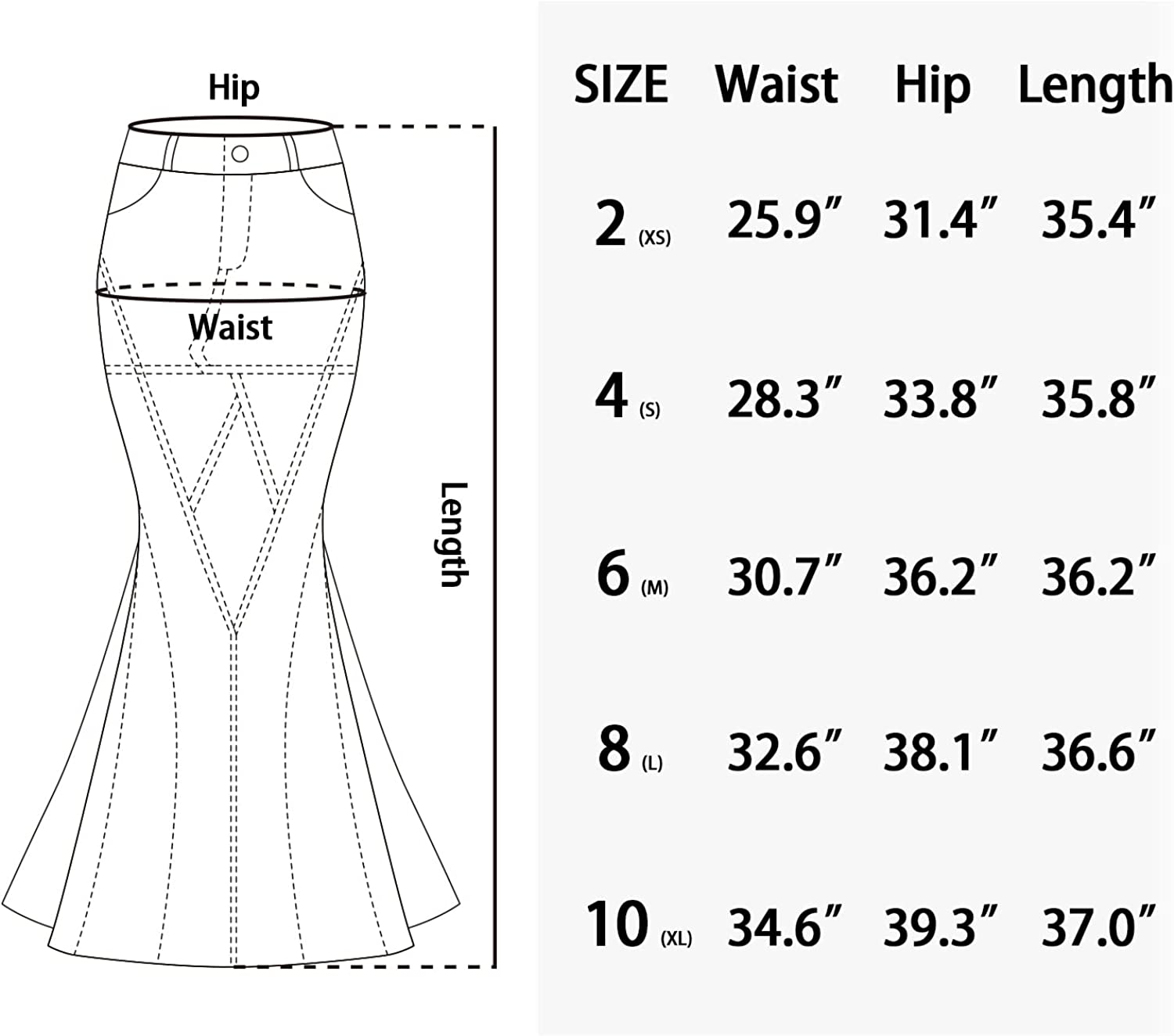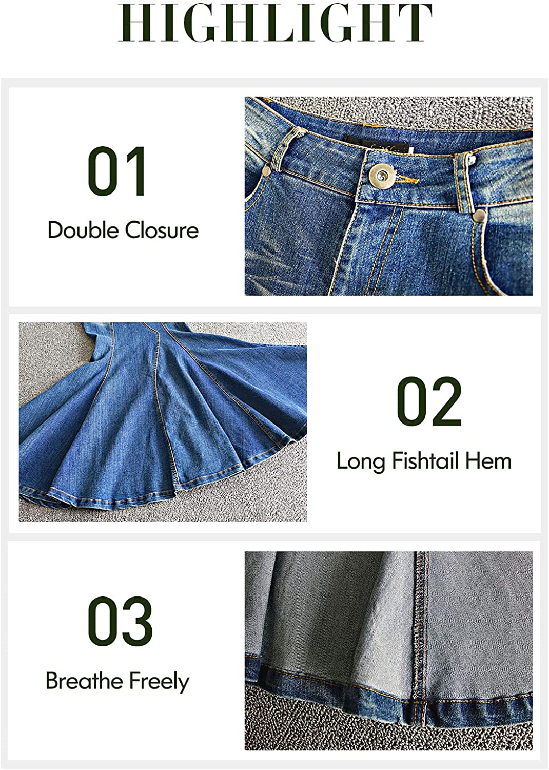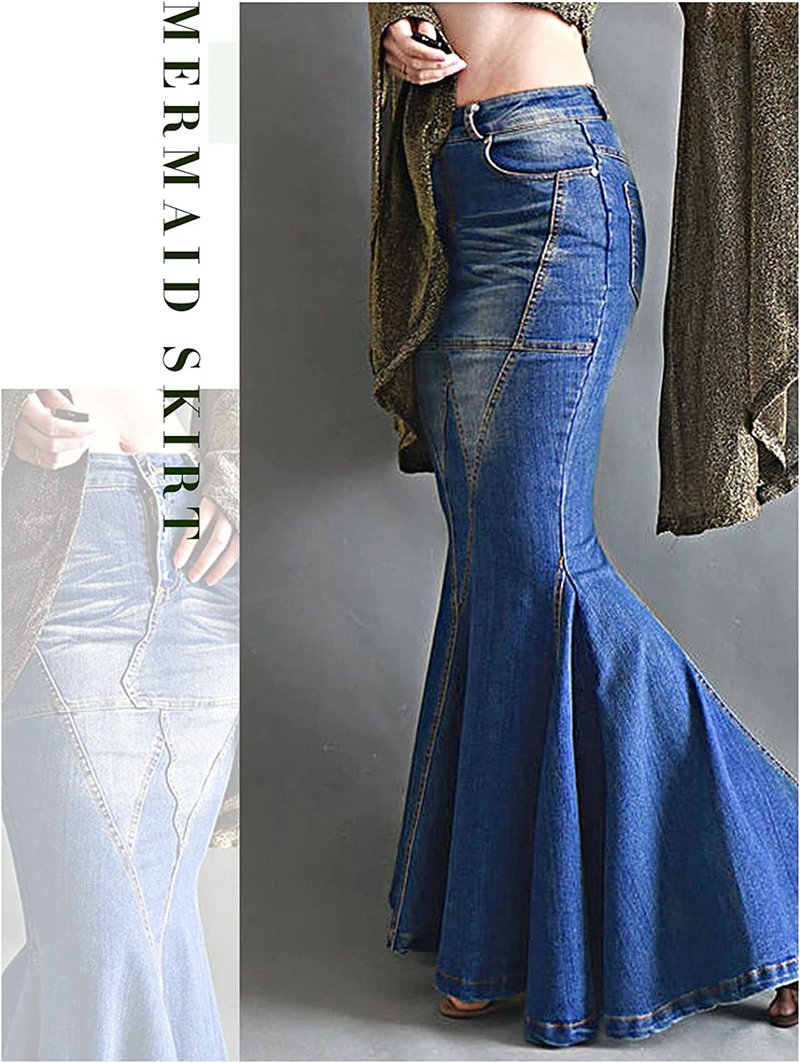 LISUEYNE Women's Casual Stretch Waist Washed Denim Ruffled Fishtail Skirt Long Denim Skirt $151.0 |