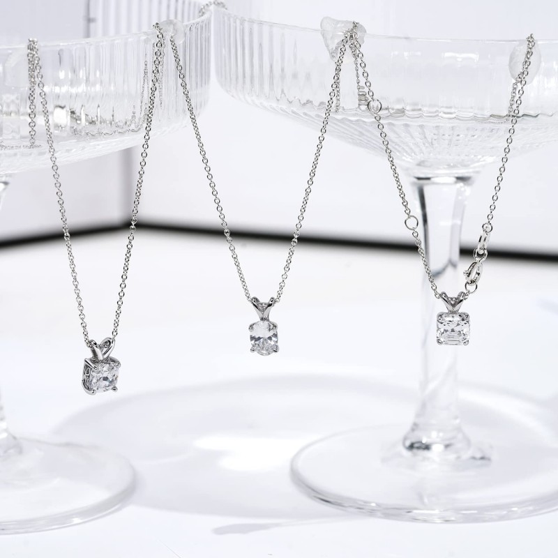 Argos pendant necklace in platinum-plated sterling silver with a square-cut single stone, made of Infinite Element zirconia $196.0 |