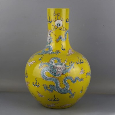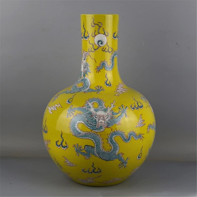 HOUKAI Antique Engraved Yellow Dragon Vase Five Pastel Colors Kiln-Aged Porcelain Ornaments Vases For Home Office Decoration $15559.0 |