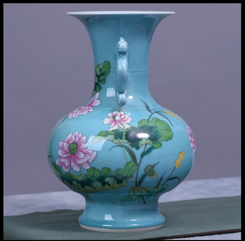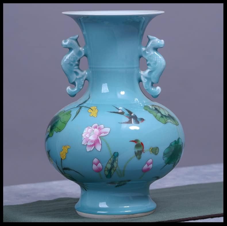 HOUKAI Antique Celadon Vase Setting Supplies Blue Glaze Peony Flower Study Room Decorative Ceramic Crafts $17522.0 |