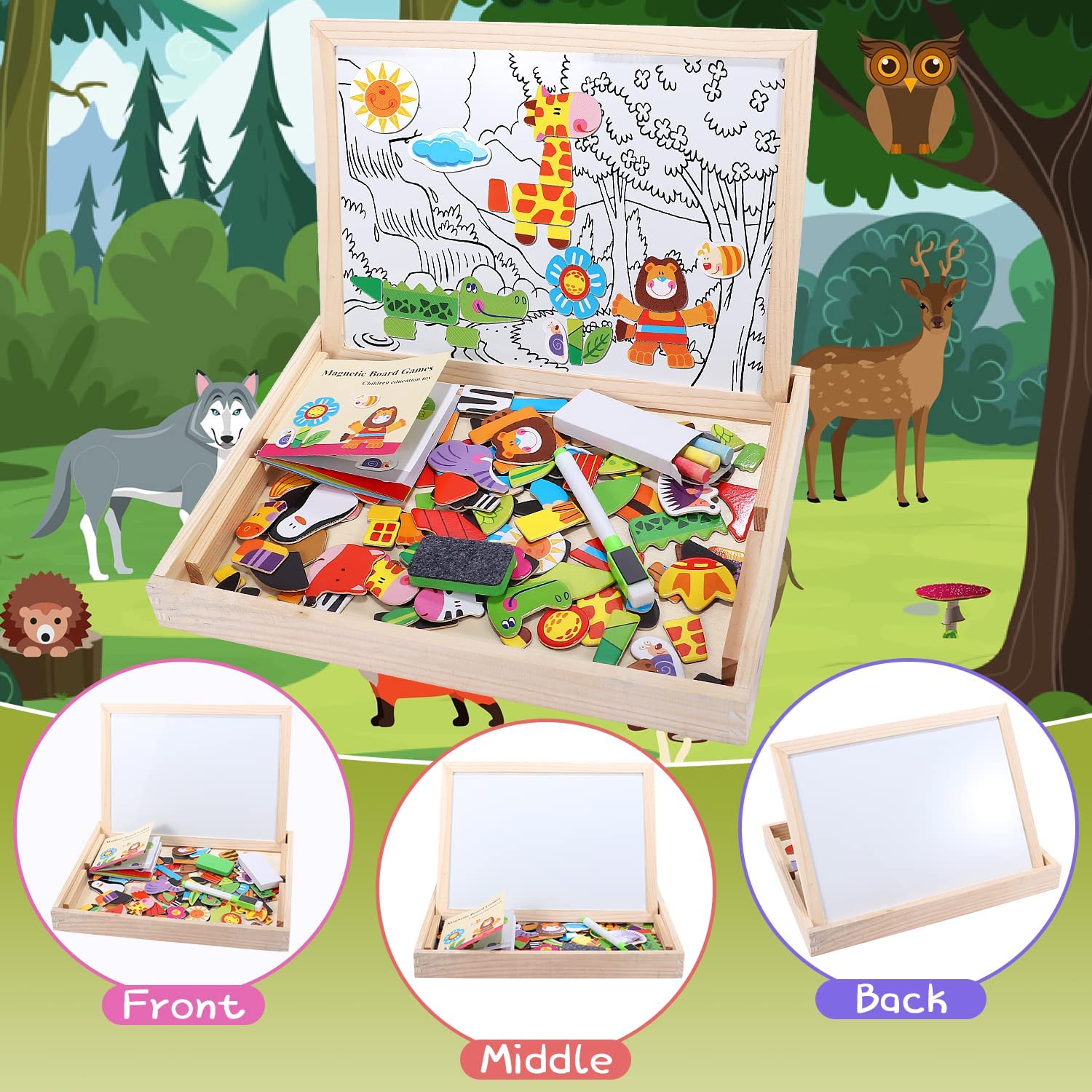 Lewo Wooden Puzzle Toys Magnetic Art Easel Animal Wooden Jigsaw Puzzle Kids Games $52.0 |