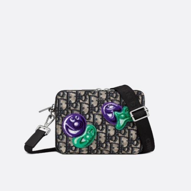 Issue de la collaboration avec l'artiste Kenny Scharf, la pochette a bandouliere associe elegance et fonctionnalite pour accueillir tous vos essentiels. Confectionnee en toile jacquard Dior Oblique beige et noir, elle est rehaussee de patchs brodes DIOR AND KENNY SCHARF. La fermeture zippee bidirectionnelle sur le dessus ainsi que la poche zippee a soufflet en font une piece tres fonctionnelle. La bandouliere amovible et reglable signee CHRISTIAN DIOR vous permettra de porter cette pochette crossbody, a l'epaule ou a la main.
