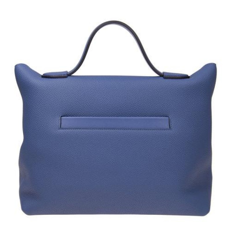 HERMES/HERMÈS Ladies Blue Cowhide Metallic Silver Buckle Handbag Tote Handbag Clutch Women's Bag 242435CMAATG - Teem $1196.0 |