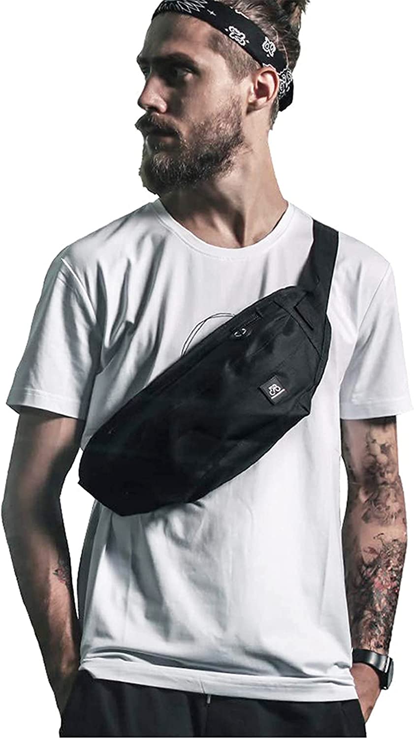 Women's Waist Pack Men's Unisex Waist Pack with Headphone Jack and Zipper Adjustable Shoulder Strap, Black Waist Pack for Outdoor and Outdoor Activity Gym (Waist Pack).