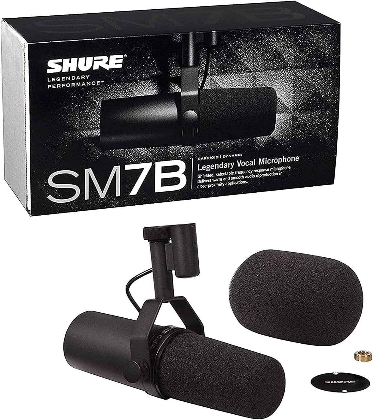 Shure SM7B Vocal Dynamic Microphone for Radio, Podcasting and Broadcast Recording, XLR Studio Mic for Music & Voice, Wideband, Warm & Smooth Sound, Rugged Construction, Removable Windshield - Black