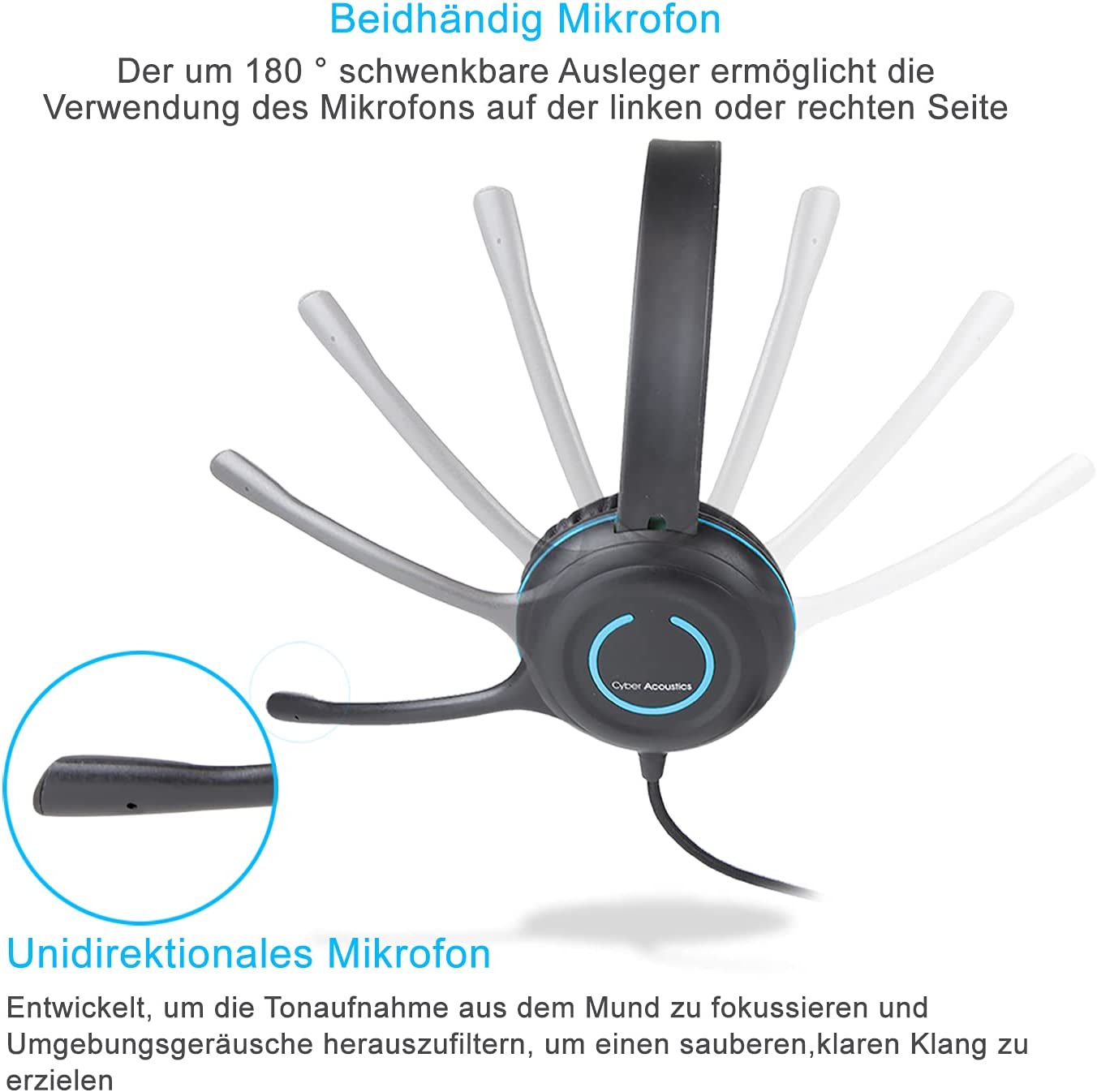 Cyber Acoustics Stereo USB Headset (AC-5008A) Microphone Mute, PC & Adjustable Microphone Stick Mac for Classroom or Home